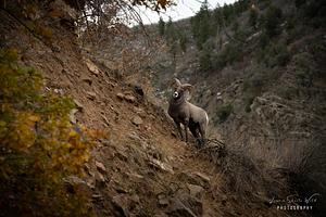 Encounter with the king of the mountains! Witness the captivating gaze of this majestic bighorn sheep as it fearlessly navigates a steep hillside. With its powerful hooves and impressive horns, this magnificent creature is perfectly adapted for the rugged terrain it calls home. It's moments like these that humble us and ignite a deep appreciation for the untamed beauty that surrounds us and serves as a reminder to embrace challenges head-on and climb the steep hills in our own lives, just as the bighorn sheep conquers the mountains.